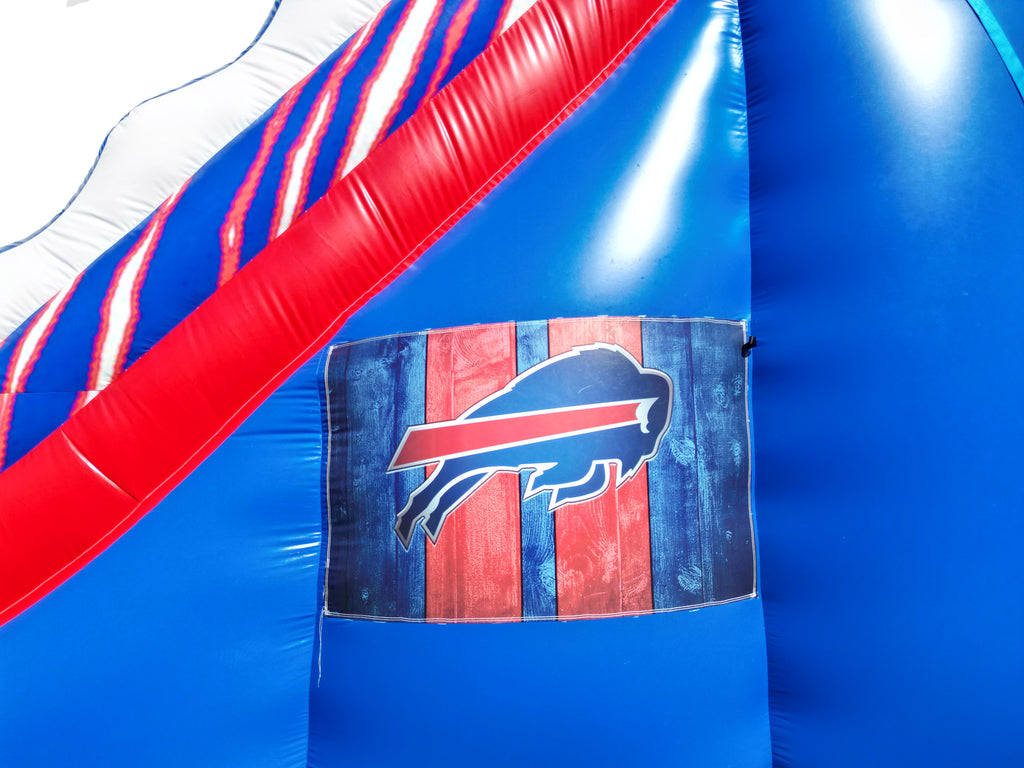 Built from 16 oz commercial-grade PVC vinyl with reinforced stitching, the 19ft Bills Mafia Water Slide offers long-term durability and easy maintenance, making it ideal for both backyard parties and large-scale events. Its striking appearance and reliable design ensure consistent rental demand season after season.