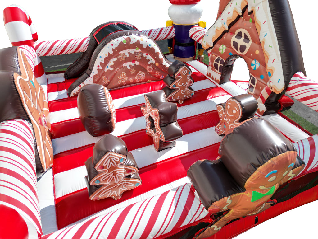 The Nutcracker Playland is a festive holiday attraction featuring a gingerbread house façade, candy cane tunnels, and two life-size nutcracker characters that create an immersive Christmas-themed experience for younger children. This playland offers a variety of interactive elements, including pop-ups, crawl-through sections, and open play areas, making it ideal for winter festivals, school events, holiday parties, and community celebrations. Constructed from 16 oz commercial-grade PVC vinyl with reinforced stitching, the Nutcracker Playland provides durable, low-maintenance performance while delivering strong seasonal rental appeal.
